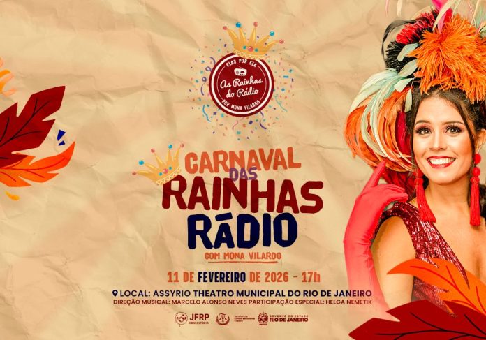 Mona Vilardo comanda uma viagem à época de ouro dos carnavais no Theatro Municipal do Rio. No dia 11 de fevereiro, quarta-feira, às 17h, a cantora e atriz desfilará clássicos dos bailes de gala imortalizados pelas Rainhas do Rádio no Espaço Assyrio.