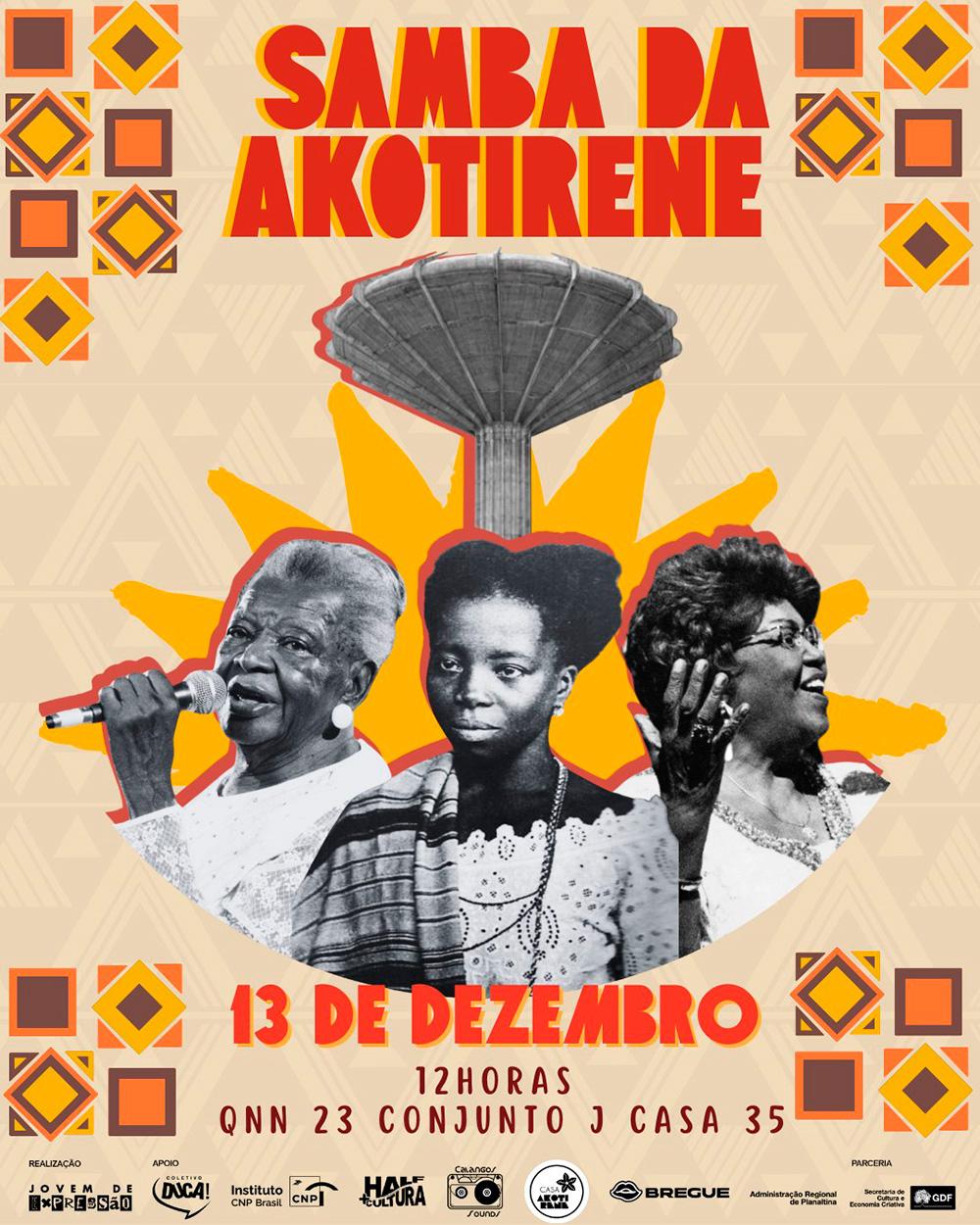 A Casa Akotirene, um Quilombo Urbano em Ceilândia, recebe a primeira edição do Samba da Akotirene, neste sábado (13/Dez). A roda de samba tem entrada gratuita e ocorre das 14h às 17h, integrando a 2ª edição do Projeto Formação de Arte e Cultura nas Periferias. O evento é uma realização do programa Jovem de Expressão em parceria com a Secretaria de Cultura e Economia Criativa do Distrito Federal (Secec-DF).